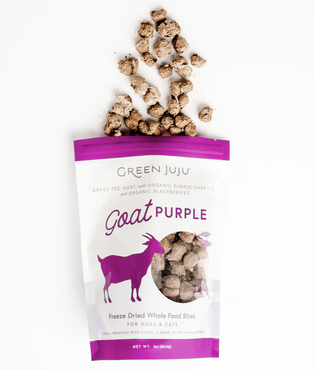 Color-rich for vibrant energy and gut-loving goodness, these freeze-dried raw bites combine grass-fed goat heart, liver, and kidney with antioxidant-packed purple produce like organic blackberries, cabbage, and carrots.