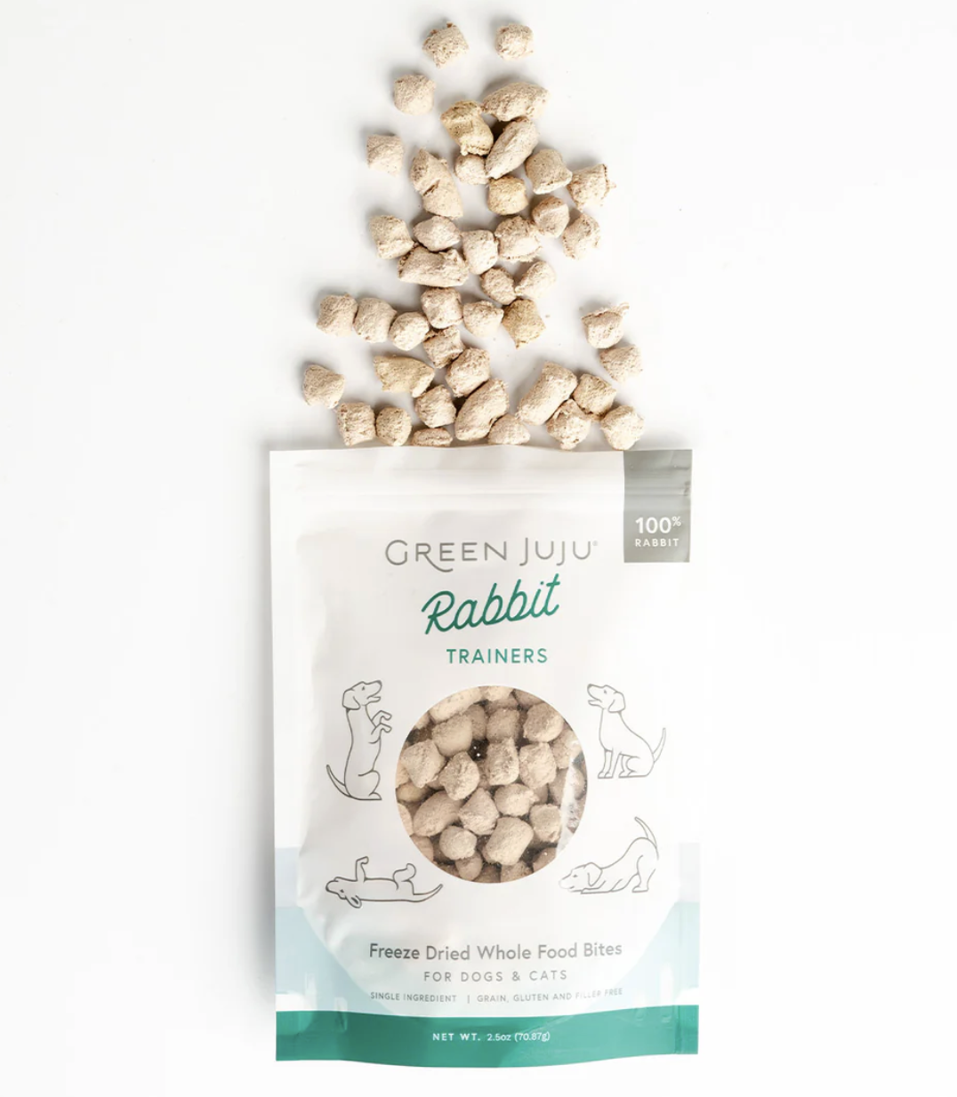Made from 100% rabbit, our raw freeze-dried Rabbit Trainers are gentle, clean, and packed with goodness—perfect for dogs and cats with food sensitivities or on elimination diets.