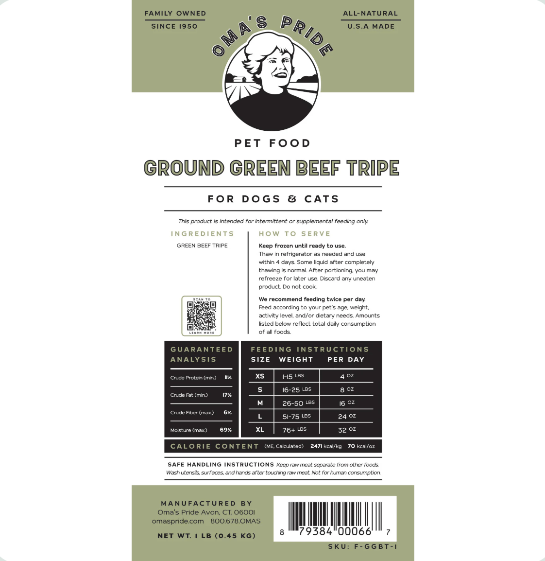 Oma's Pride | Frozen Green Beef Tripe | 1lb