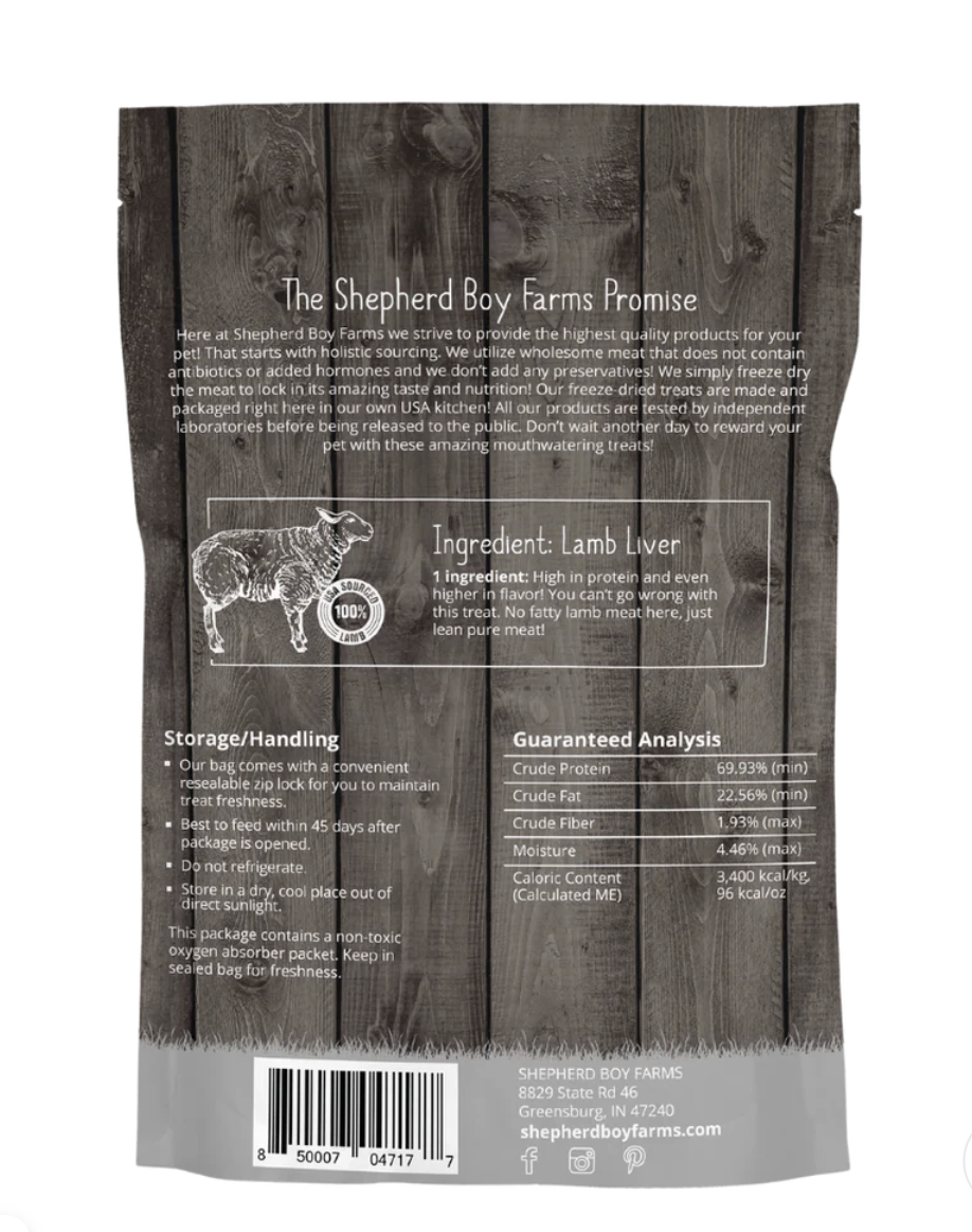 Shepherd Boy Farms is committed to real, wholesome nutrition. Our lamb liver is freeze-dried to maintain its natural benefits, offering a treat your pet will love.