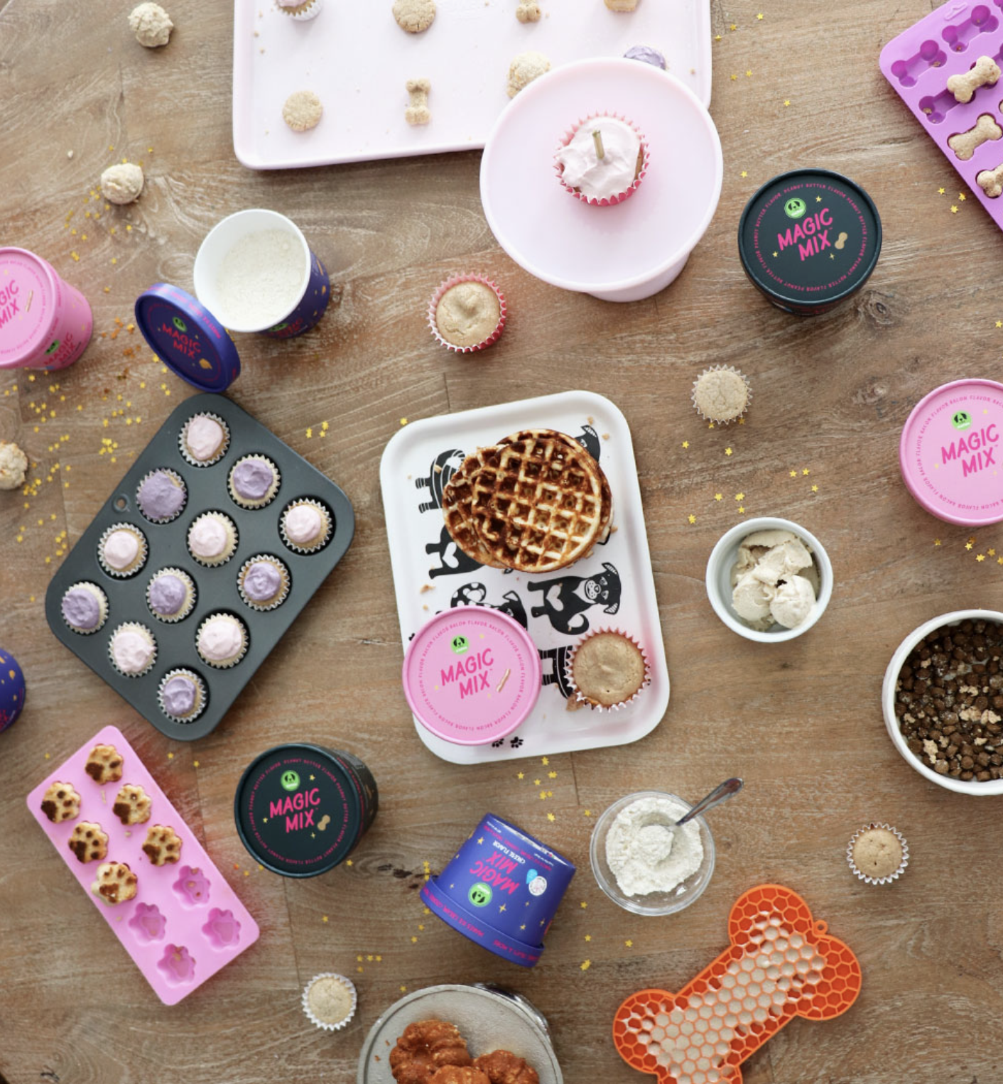 Our versatile, all-in-one powder treat mix effortlessly lets you create your pet’s favorite treats in a snap – just add water to our specially crafted powder mix. From creamy ice cream to mouthwatering cookies, cake, cupcakes, waffles, and beyond, the possibilities are endless! Elevate mealtime or spoil your furry friend with a delectable snack anytime, anywhere. With Magic Mix™, delighting your pet has never been easier or more delicious. Dive into a world of culinary creativity with our all-in-one powder solution!